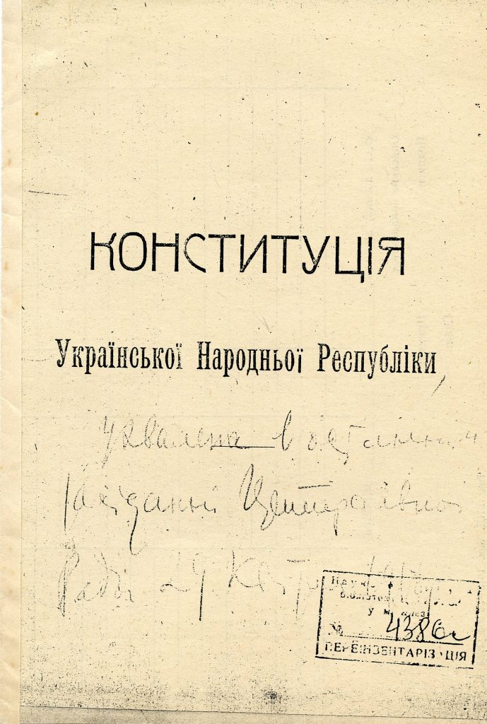 Актом історичної ваги, який постатейно розглянула Центральна Рада 29 квітня, стала Конституція Української Народної Республіки. Після трьох читань з незначними редакційними правками “Статут про Державний устрій, права і вольності УНР” був прийнятий. Прийнятий як документ майбутнього, як своєрідний заповіт, без якого Центральна Рада не могла зійти з політичної арени.