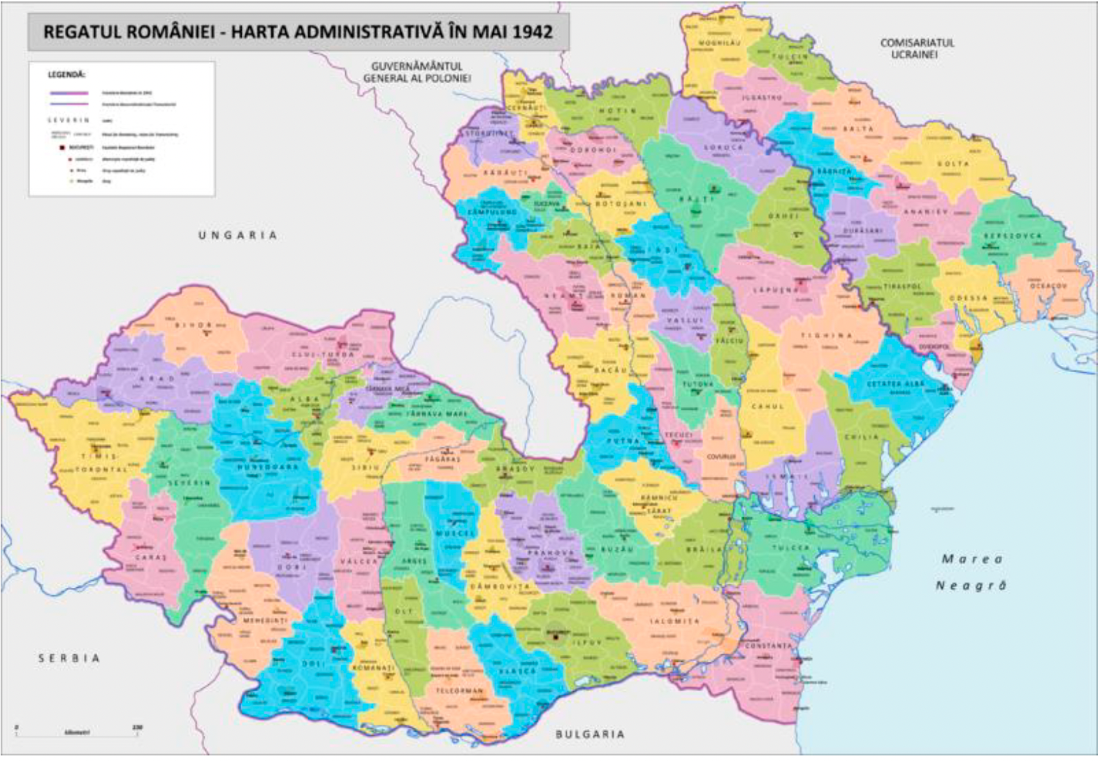 Адміністративна мапа Румунії на 1942 р.