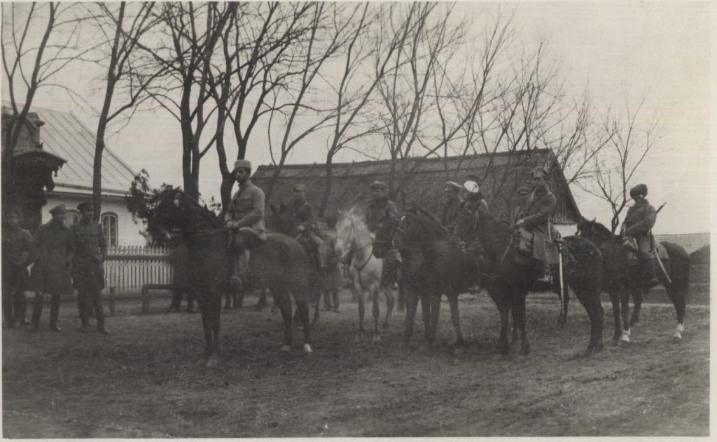 Фотографія старшин штабу 3-го червоного українського кінного полку (в минулому 1-ої кавалерійської бригади УГА) напередодні протибільшовицького виступу.Березень 1920. Херсонщина, колонія Кассель (с.Комарівка). Джерело: Електронний архів українського визвольного руху