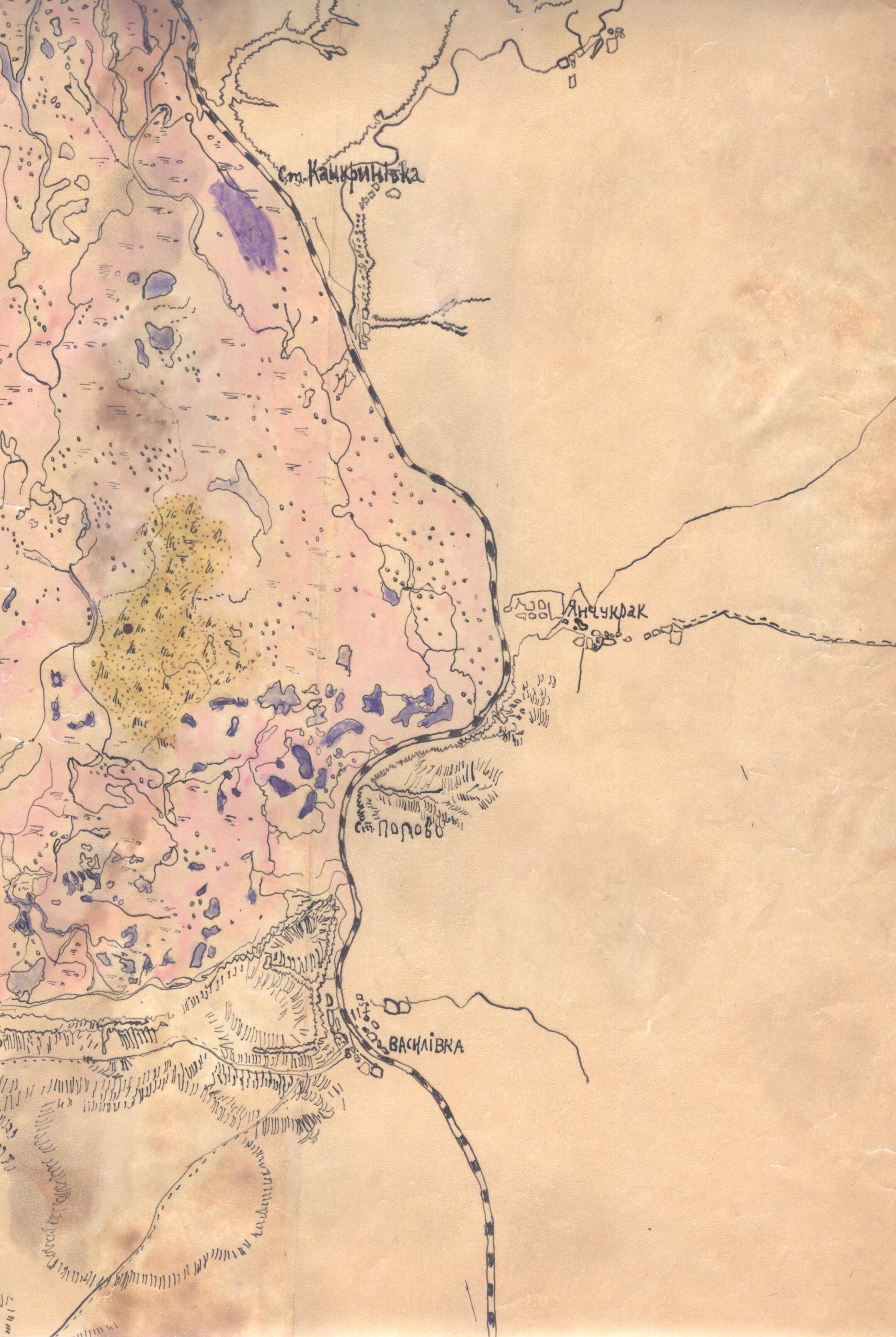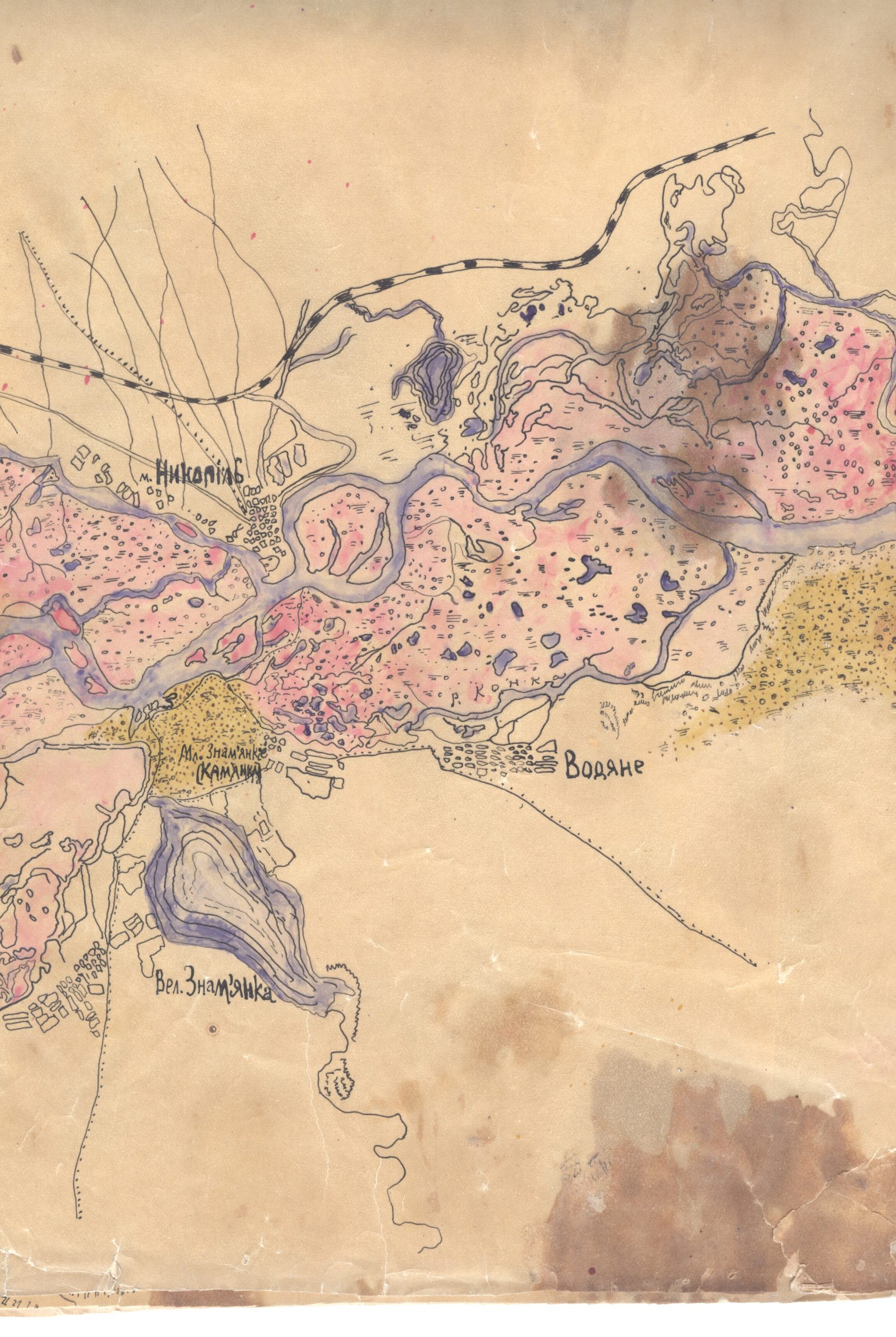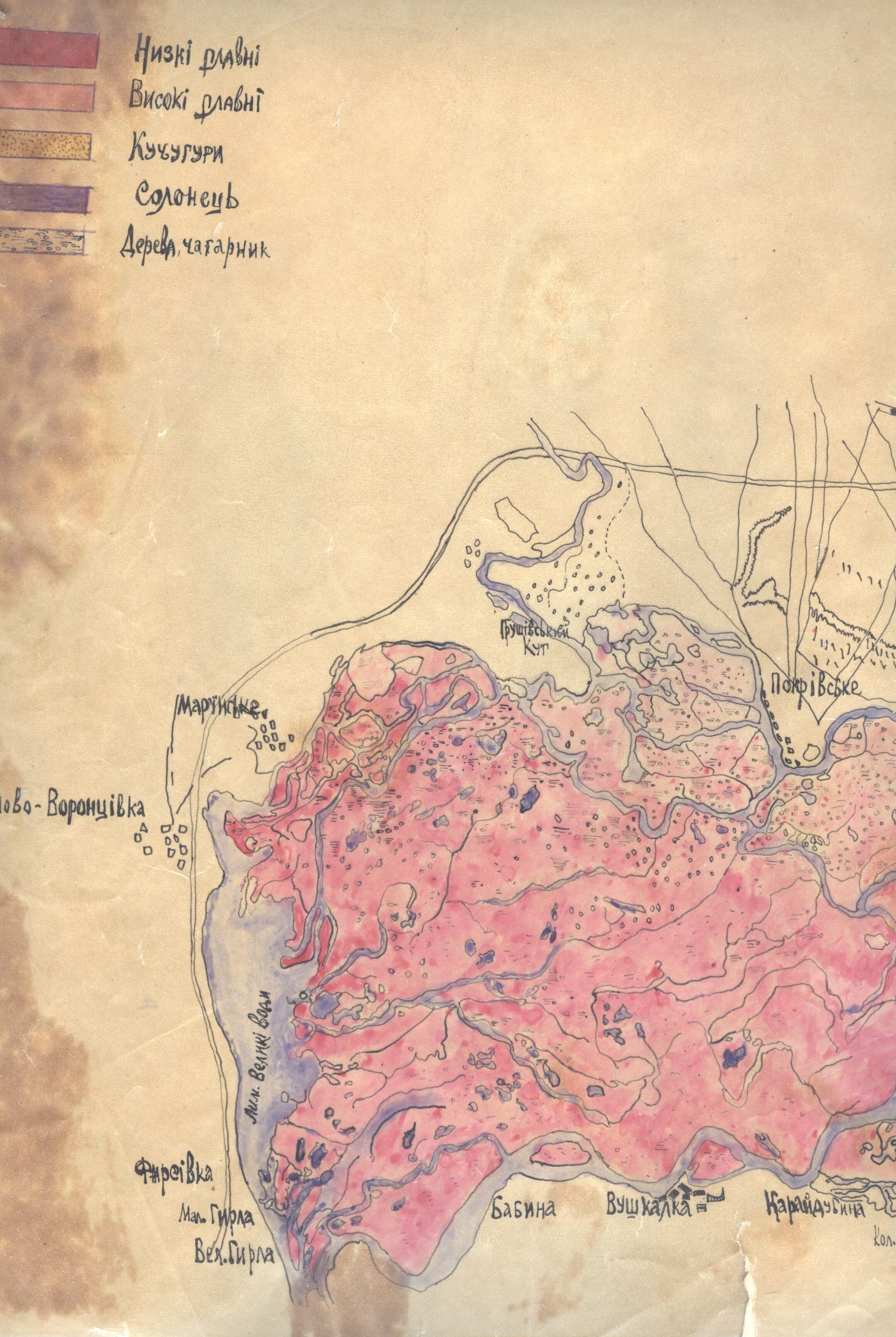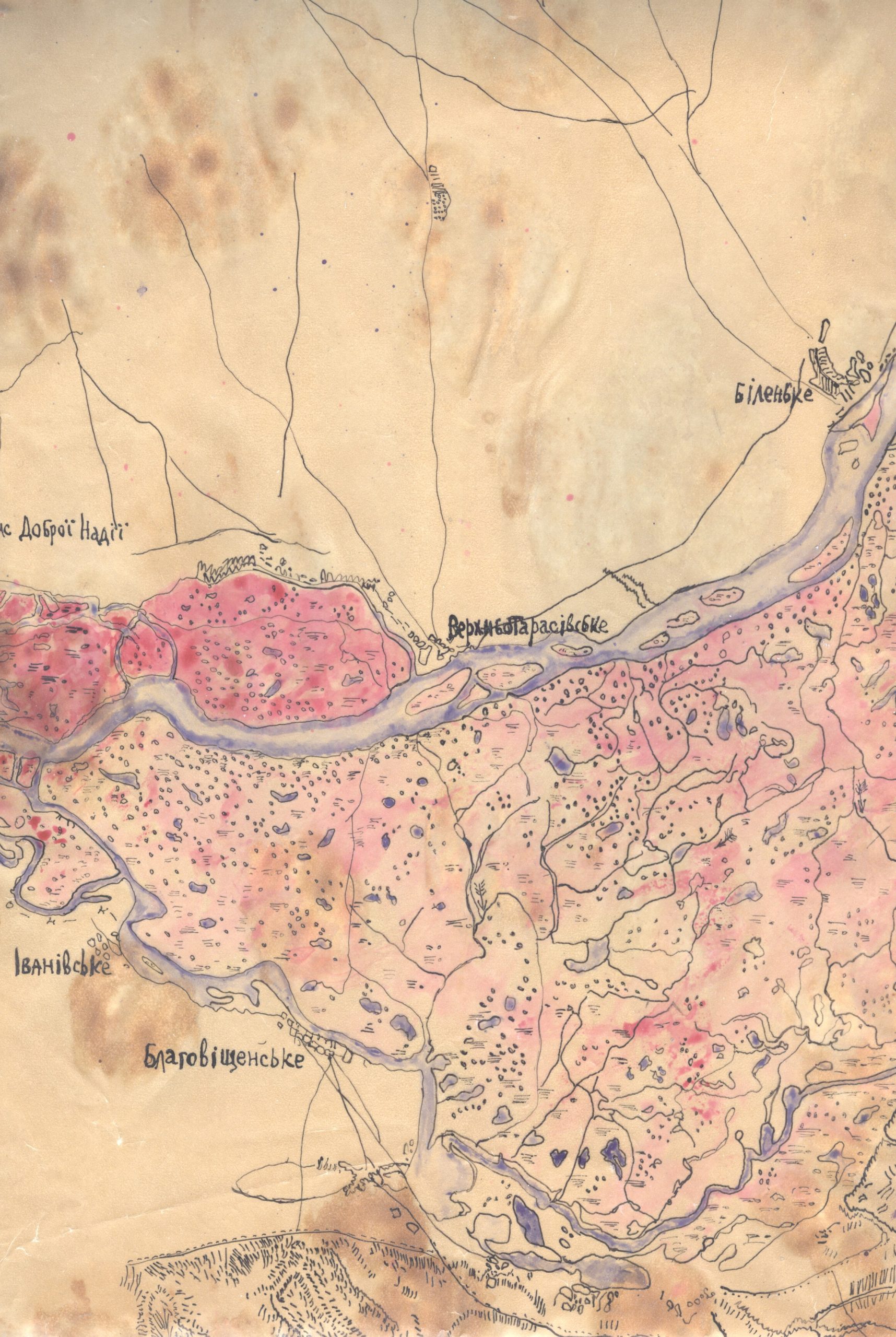Але при тому на кальці (для юних – це прозорий папір, на якому можна від руки перемалювати якусь картинку) шрифтами характерними українськими по мапі 1941 року перемальовано Великий луг. Є навіть поруч німецька колонія. Тут окремо треба буде з’ясовувати… На ті часи воно було секретним. Ще раз стаття.