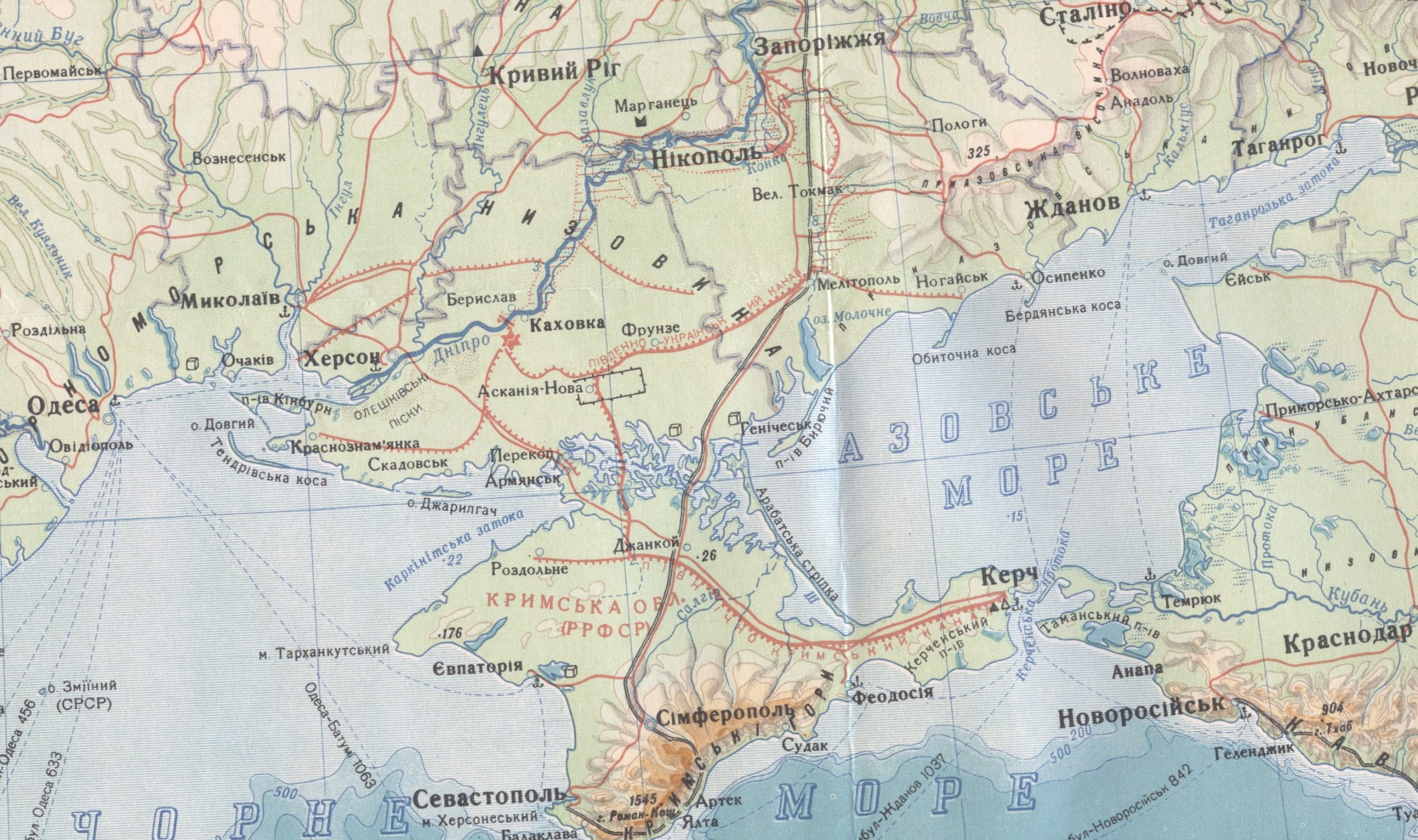 2) Просто навчальна мапа 1952 року, яка показує, якщо придивитися, набагато більший масштаб «перетворення природи». Греблі, канали, водосховища та великі будови комунізму. Прикметно, що ми ще, Богу дякувати, не усе отримали. Але краєзнавці, гідротехніки, біологи та інші достойники, зможуть зрозуміти масштаби того, що могло бути.