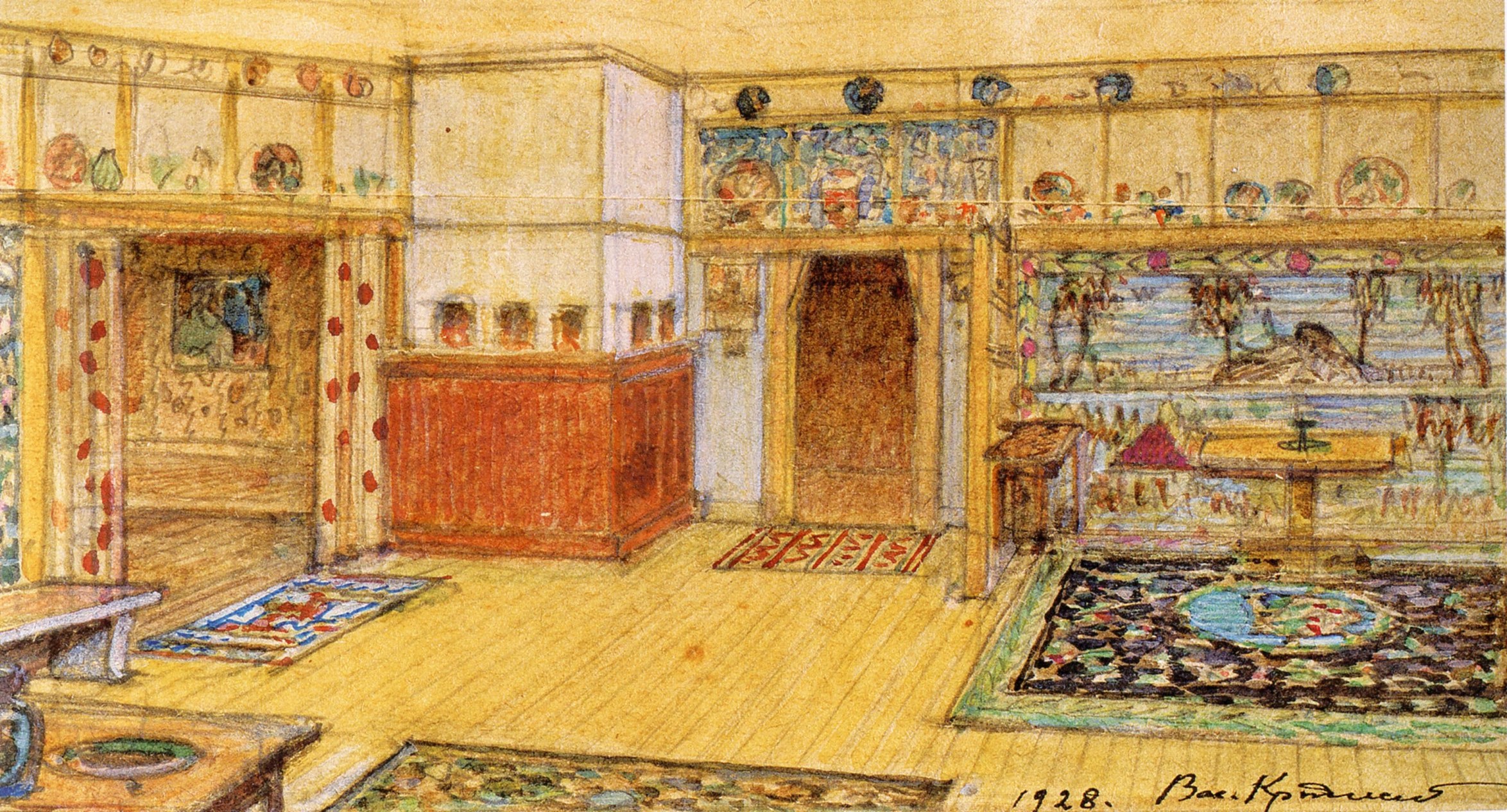 8. Для оздоби експозиції виставки професорів і фундаторів Української Академії Мистецтва використали збірку килимів з музею-майстерні Василя Кричевського. На початку 1918 р. виставку довелося згорнути через підготовку до Всеукраїнських установчих зборів, а власні твори Кричевського та експоновані килими повернути на Паньківську, 9, де вони й загинули.